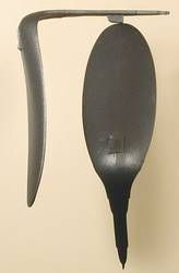 engl. Schaftkappe, ovale Form mit langer Angel. Unter der Angel ein Hakstück, das sich unter dem Kopf einer im Schaft eingelassenen Holzschraube einhakt. ca. 50x122mm, Stahlguss,