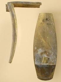 kleinere Schaftkappe im Stil einer Lancaster Rifle um 1770, neu gestaltet von John Bivins. Bronze, ca. 46 x 120mm