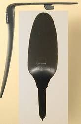 engl. Schaftkappe, breite Form mit langer Angel. Unter der Angel ein Hakstück, das sich unter dem Kopf einer im Schaft eingelassenen Holzschraube einhakt. ca. 50x132mm, Stahlguss,