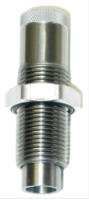 Im Matrizenkörper befindet sich ein frei beweglicher Einsatz mit der Crimpvorrichtung. Die Patrone mit dem gesetzten Geschoss wird in den Hülsenhalter eingesetzt und mit dem Hebel der Ladepresse nach oben gedrückt. Die Crimp Matrize in die Ladepresse einsetzen/einschrauben bis der untere Teil des frei beweglichen Crimpeinsatzes den Hülsenhalter berührt. Von oben sieht man jetzt das Geschoss in der Mitte der 4 Crimpbacken stehen. Den Hebel der Ladepresse mit der Patrone nach unten bewegen und die Crimp Matrize 1/2 Umdrehung tiefer schrauben. Den Hebel der Ladepresse wieder nach oben drücken bis der Hülsenhalter wieder den unteren Teil des Crimp Einsatzes berührt. Drücken Sie jetzt die Patrone mit dem Hebel der Ladepresse vollständig nach oben und der Hülsenhalter schiebt jetzt die Patrone mit dem Crimpeinsatz nach oben. Dabei stützt sich das Oberteil des Crimpeinsatzes gegen den Matrizenkörper ab und die 4 Spannbacken drücken den Hülsenmund auf das Geschoss. Crimp fertig. Den Sitz des Geschosses prüfen und gegebenenfalls die Festigkeit des Sitzes durch Herunter- oder Herabdrehen der Factory Crimp Matrize justieren.