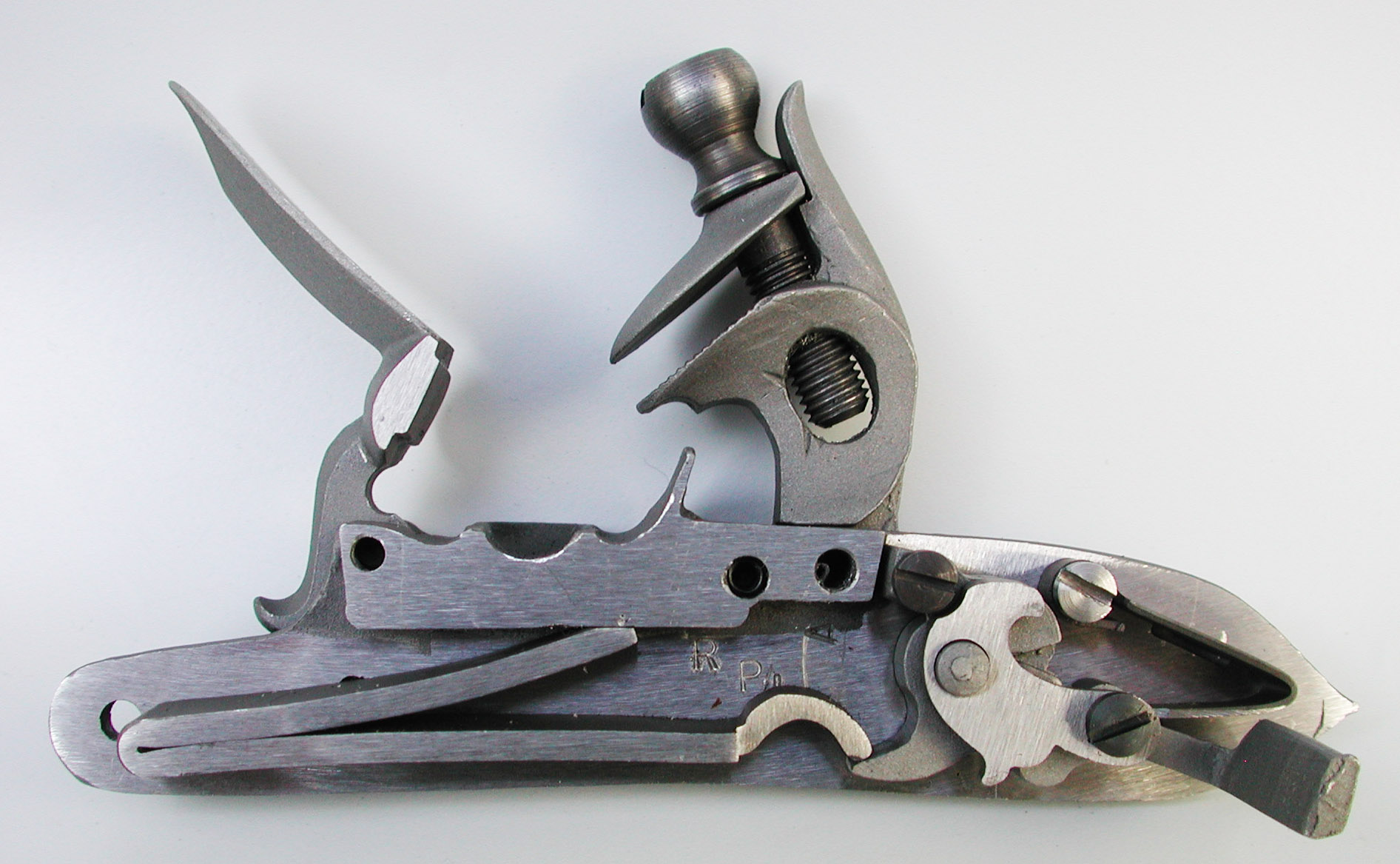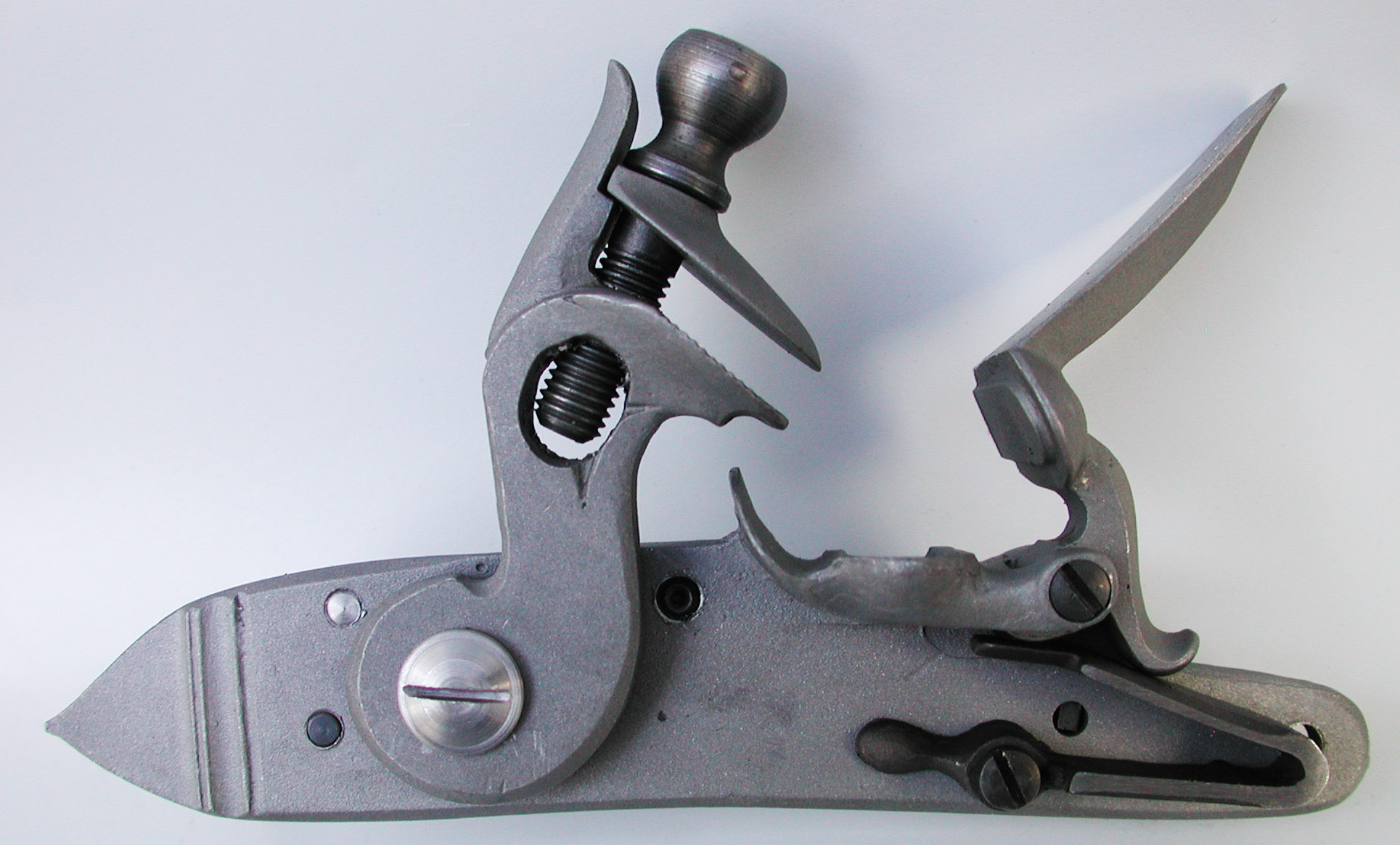 Ein kleines Steinschloss als Austauschschloss für spanische Waffen von Ardesa, CVA und Traditions.Das Modell wurde nach einem Original von ca.1830 gebaut. Ideal auch für schlanke Longrifles und Pistolen. Größe ca. 115x22mm