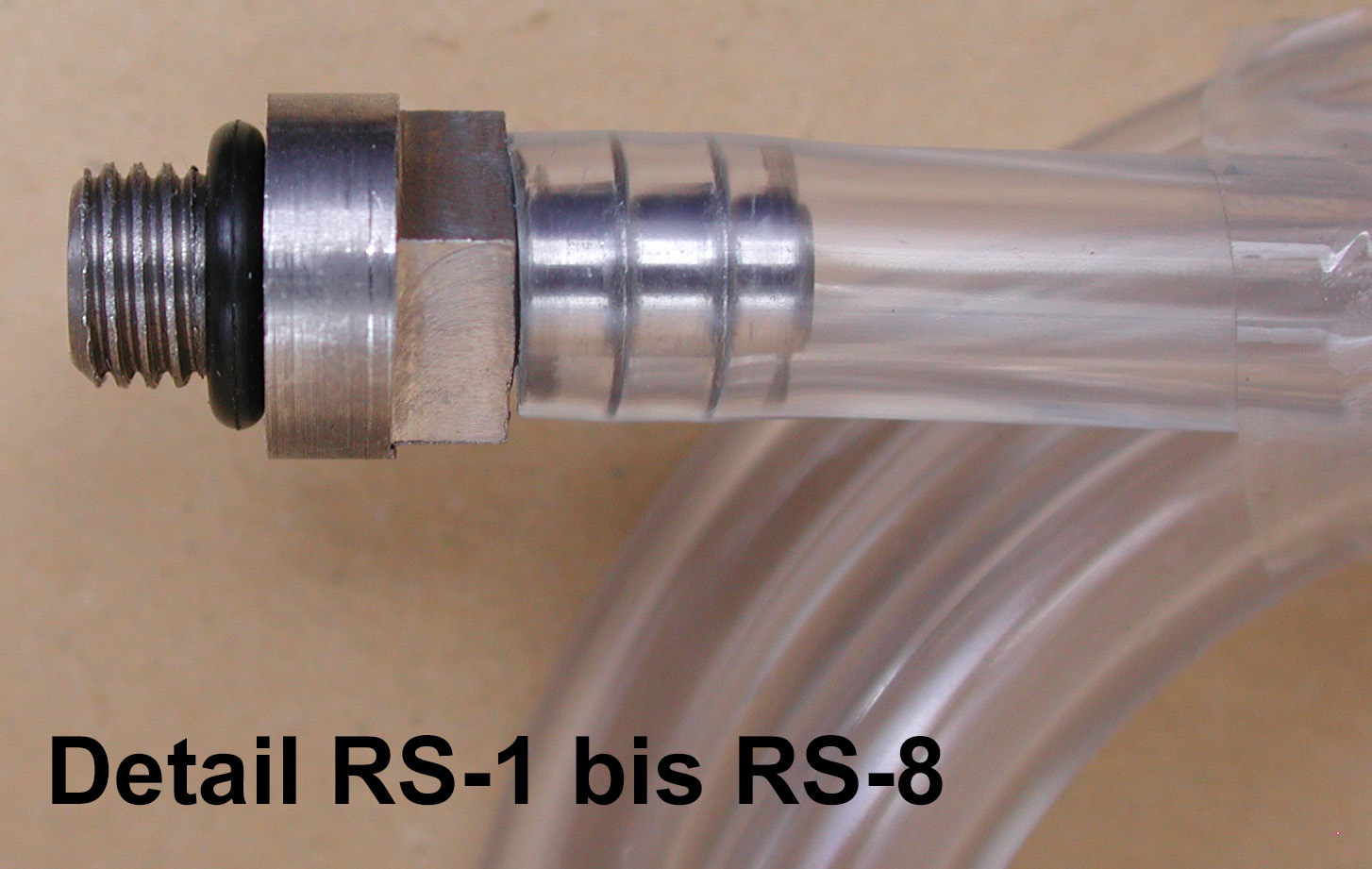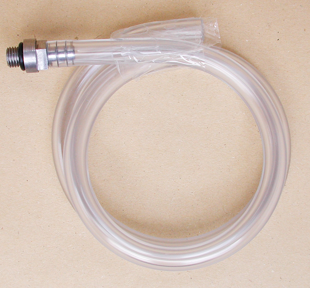 Waffenreinigen ohne Laufausbau. 50cm langer Reinigungsschlauch mit eingesetztem Messingadapter und Dichtring zum Einschrauben in den Pistonsitz. Auch für Steinschlosswaffen mit ausschraubbarem Zündlocheinsatz.