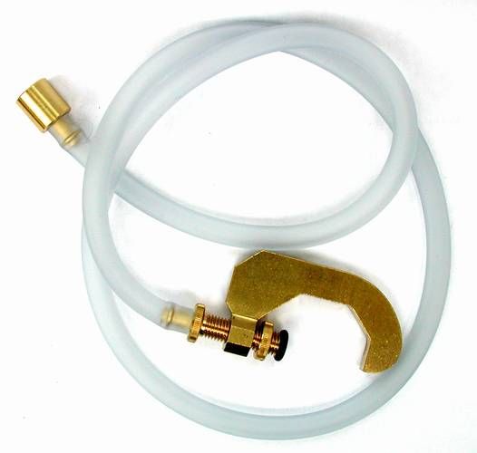 Für Läufe mit einem Durchmesser bis 32mm .Nach dem Ausbau des Schlosses wird der Reinigungsschlauch an den Lauf geklemmt. Ein O-Ring dichtet den Bereich um das Zündloch ab und das mit einem Messinggewicht beschwerte Endstück des Schlauches wird in einen Behälten mit heißem Wasser und einigen Tropfen Spülmittel gesteckt. Mit einem nassen Putzläppchen auf einem Reinigungsstock wird durch Pumpbewegungen heißes Wasser aus dem Behälter angesaugt und wieder zurück gepumpt. Hierdurch wird der Lauf gut durchgespült, Schwarzpulverrückstände gelöst und ausgespült.Anschließend nochmals den Lauf mit klarem heißen Wasser spülen, Reinigungsschlauch abnehmen und den Lauf mit mehreren trockenen Reinigungspflastern durchwischen. Anschließend gut einölen.
