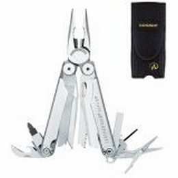 Leatherman Wave 2004 mit verbesserten Funktionen und größerer Messerklinge. kräftigere Spitzzange mit längerem Drahtschneider und Werkzeugarretierung, großer und kleiner Bithalter mit 2 austauschbaren Bits, Wellenschliffmesser, Holzsäge, Schere, Holz-/ Metallfeile , diamantbeschichtete Feile, großer Schraubendreher,Lineal (Zoll/cm), Dosenöffner, Kapselheber, Abisolierzange, Anhängeöse, inkl. Lederetui, Gewicht 283 g