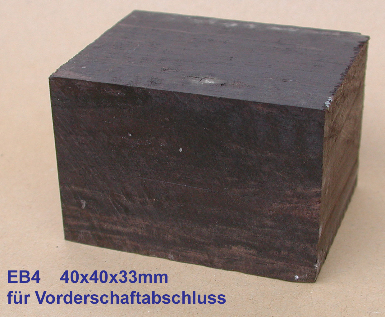 Vierkant Rohling aus hochwertigem afrikanischen Ebenholz 50mm lang 40mm breit und 33mm dick für die Herstellung eines Vollschaft -Vorderschaftabschlusses.