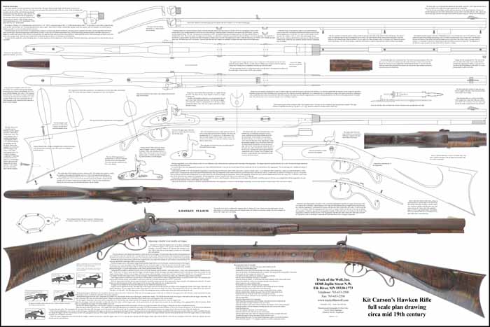 1 : 1 Bauplan für eine Kit Carson Halbschaft Hawken mit 1" Lauf, detaillierte Zeichnungen mit Bauanleitungen,