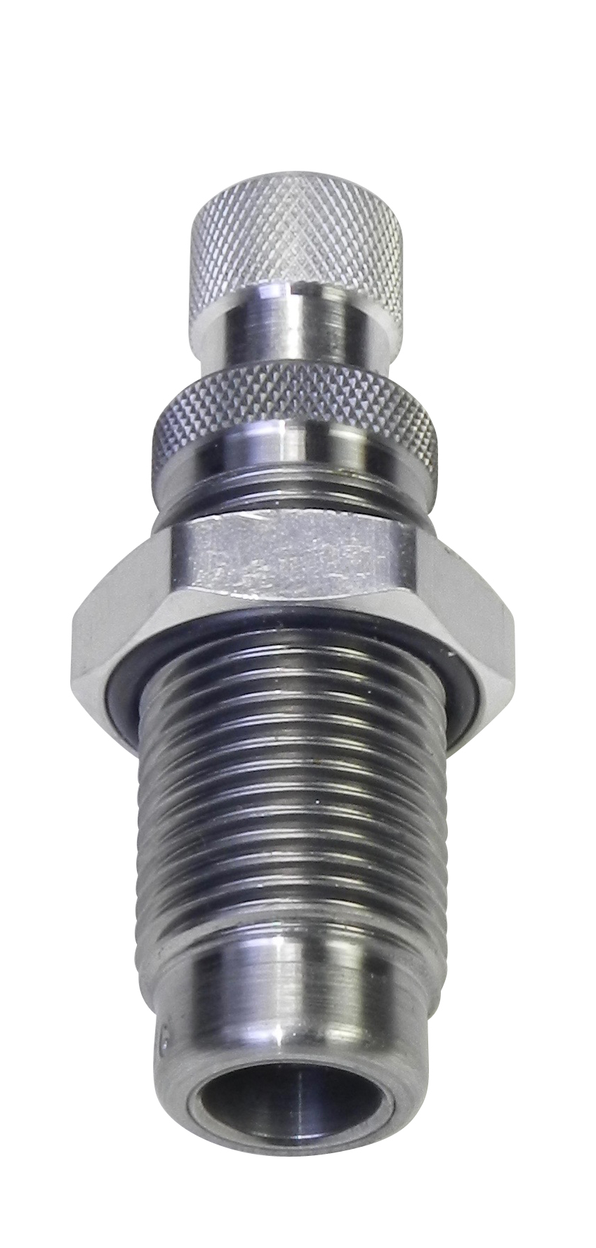 Die Matrize kalibriert den Hülsenhals mit Geschoss auf ein Minimalmaß und sorgt damit für festen Sitz des Geschosses mit gleichmäßigem Auszugswiderstand. Wichtig für alle Mehrladerwaffen.Lee Carbide Factory Crimp DieA carbide sizer sizes the cartridge while it is being crimped so every round will positvely chamber freely with factory like dependability. The adjustig screw quickly and easily sets the desired amount of crimp. It is impossible to buckle the case as with a conventional bullet seating die. Trim length is not critical so this extra operation takes less time than it would if cases were trimmed and chamfered. Revolver dies roll crimp with no limit as to the amount. A perfect taper crimp is applied to auto-loader rounds. The crimper cannot be misadjusted to make a case mouth too small to properly head-space. A firm crimp is essential for dependable and accurate ammunition. It eliminates the problems of poor ignition of slow burning magnum powders.