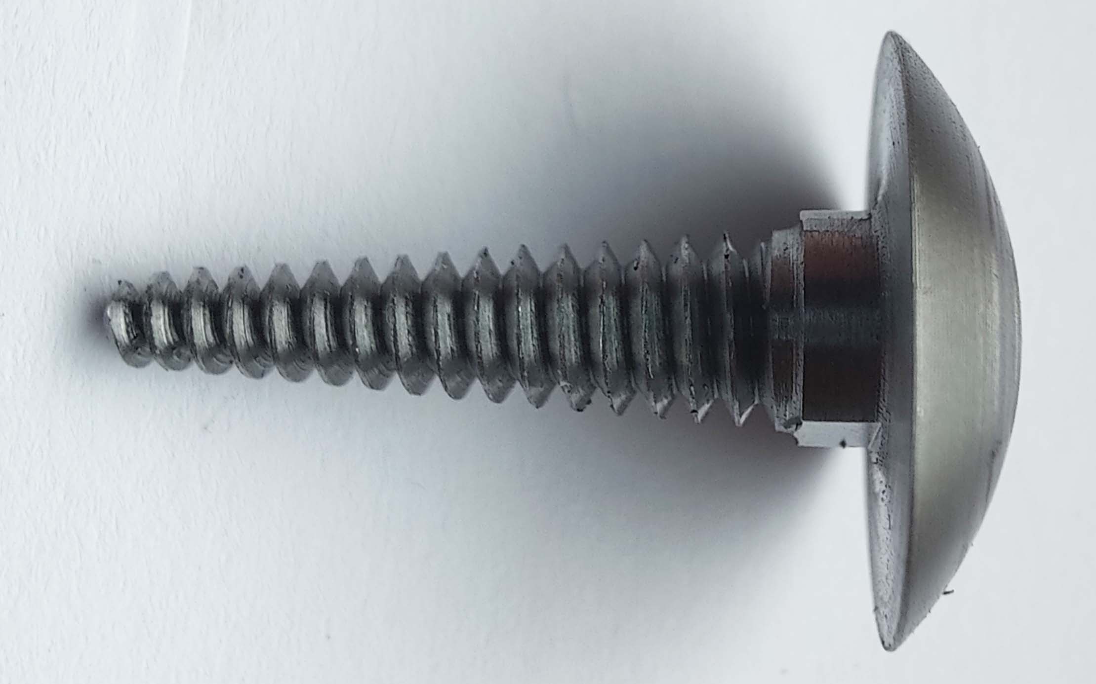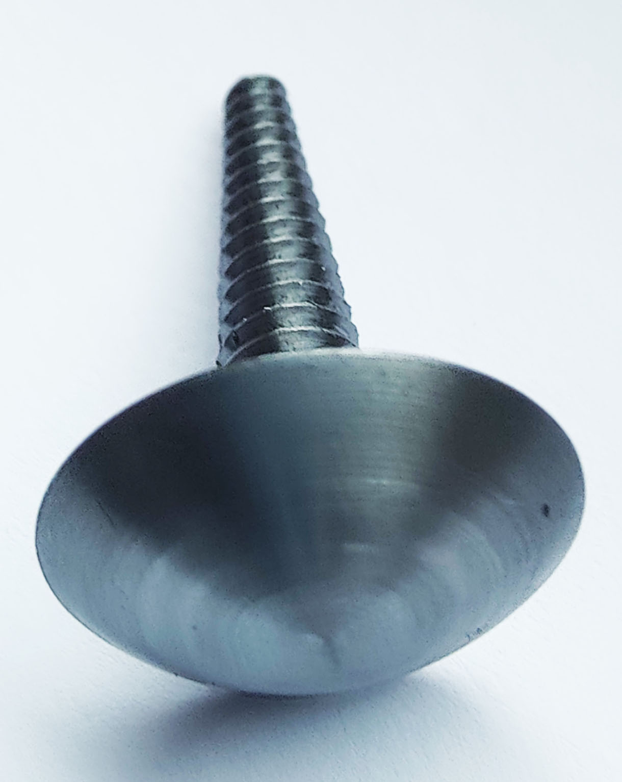 Riemenknopf für die Anbringung an der Unterseite des Schaftes zwischen Abzugsbügel und Schaftkappe. Unterhalb des Knopfes befinden sich zwei Flächen zum Einschrauben des Riemenknopfes in ein vorgebohrtes Loch im Schaft. Gesamtlänge 28mm, Durchmesser Riemenknopf 19 mm, Länge des konischen Gewindes 21,5mm; Durchmesser Gewindespitze 3,5mm, Durchmesser Gewinde oben 6mm, Höhe Ansatz zum Einschrauben 4 mm