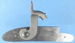 Das Schloß aus der Hawken Büchse von Jim Bridger. Samuel Hawken baute für den berühmten Trapper eine halbgeschäftete Büchse mit schwerem konischen Achtkantlauf, die noch heute erhalten ist. Das Schloss ist eine Kopie des Originals. Hersteller Davis. 123x25,6mm.