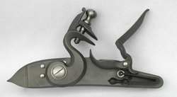 Steinschloss aus der Zeit um 1800. Rolle in der Batteriefeder, Siler Innenteile, superschnelles Schloss! Hersteller Chambers. ca. 128x24mm.